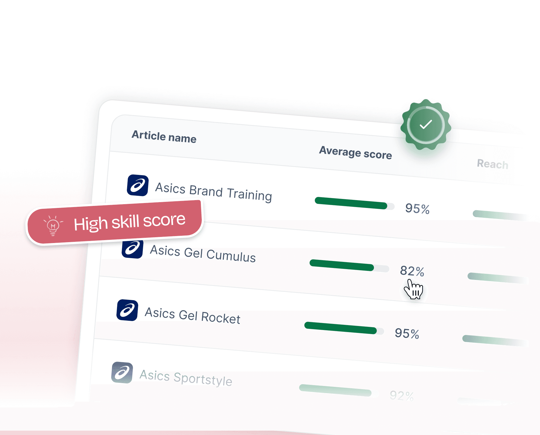 Benchmark your brand's reach, engagement, skill score and more, against other similar brands in your retailers' network.